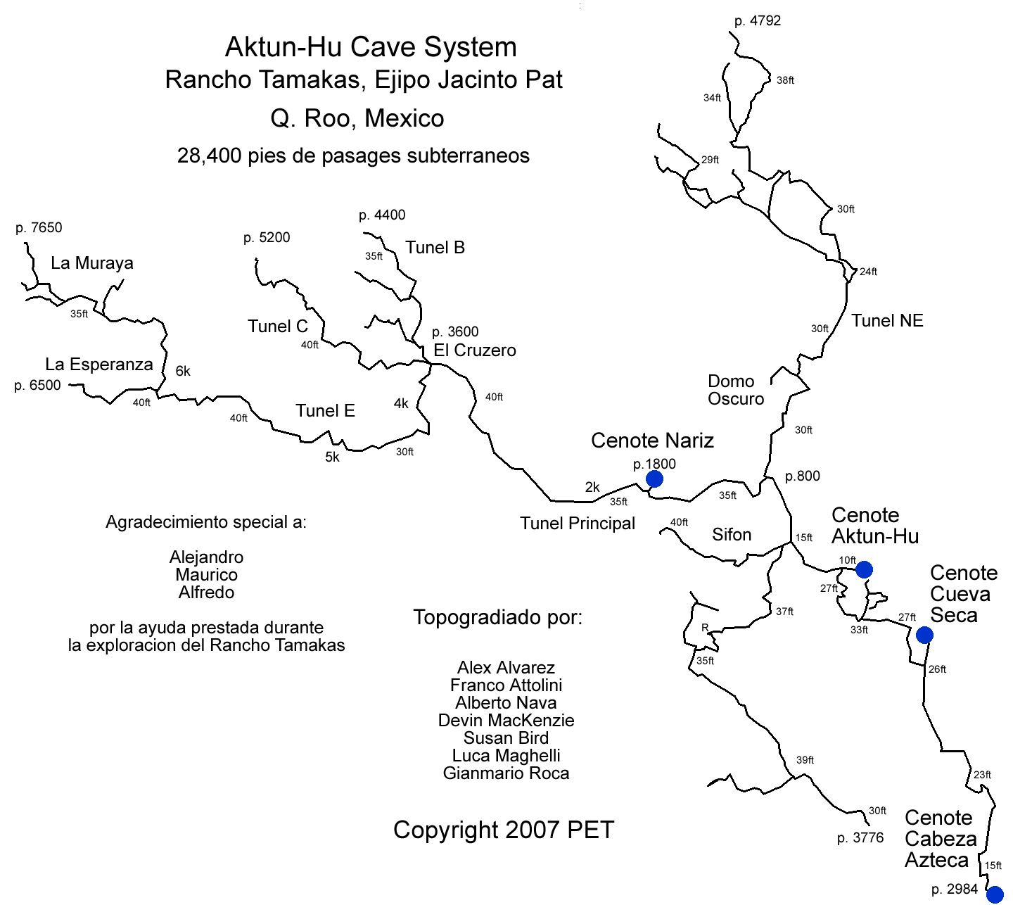 PET, Projecto de Espeleologa de Tulum, is exploring and documenting the caves near the Tulum area in Mexico Mayan Reviera. In particular we're interested in the North-West side of the Ejido Jacinto Pat past the well known caves of Nohoch Nah Chich and Dos Ojos.