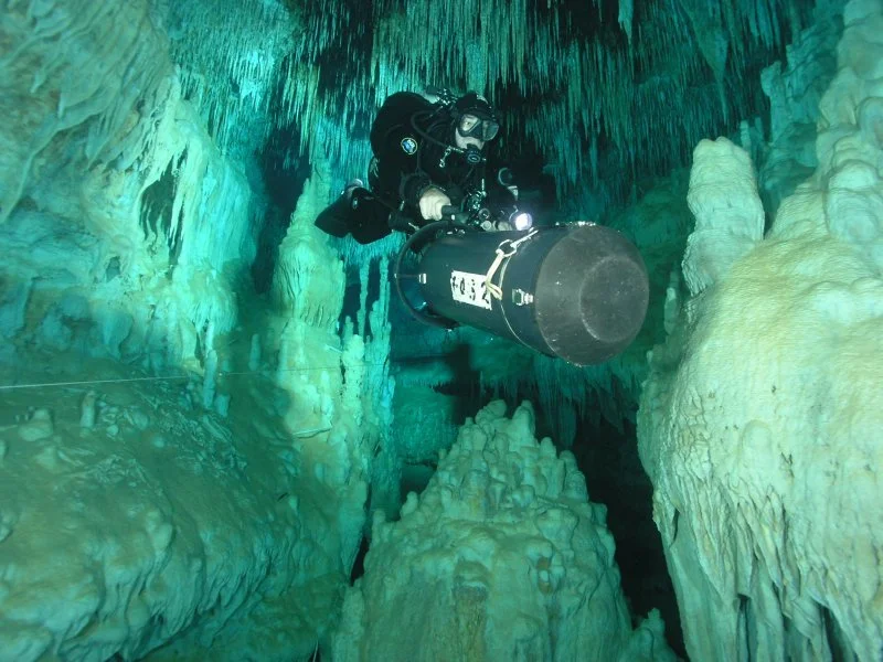 The team is composed of Mexican and American cave divers that are members of BAUE and GUE.